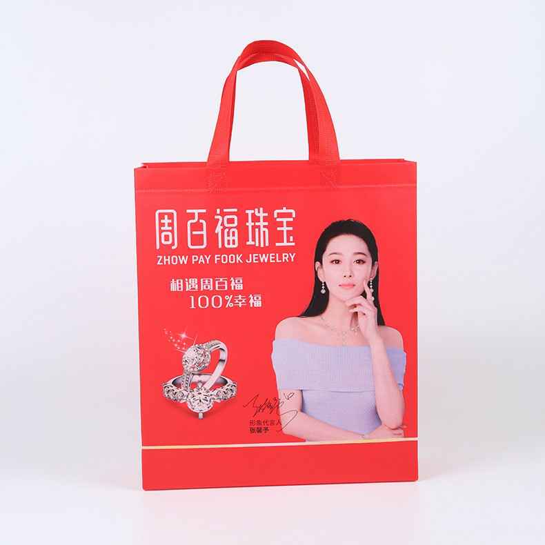 温州厂家覆膜珠宝无纺布袋现货加印LOGO-周百福